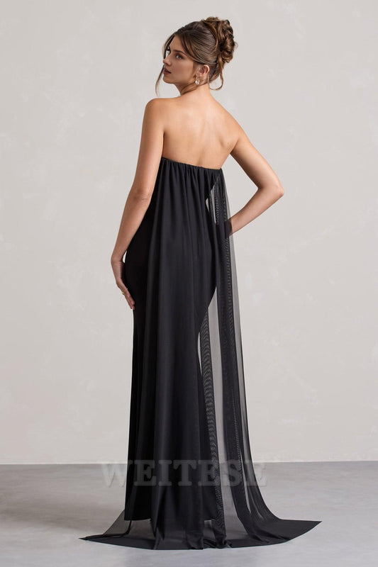 Black satin bridesmaid dresses sweetheart split floor length formal prom gown for wedding guest cg23151