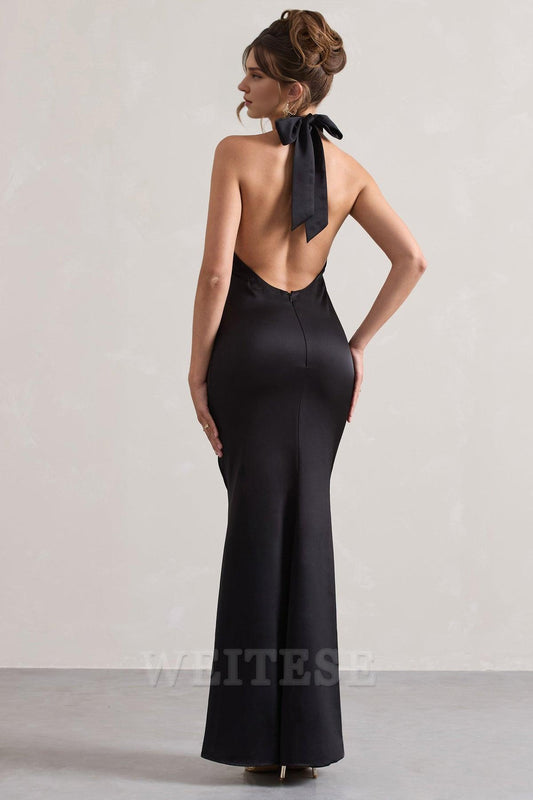 Halter Bridesmaid Dresses for Women Long Bodycon Prom Dress with Side Slit Ruched Formal Evening Dress