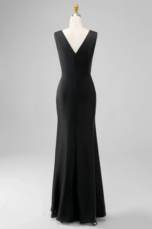 Backless Satin Prom Dresses Boat Neck Bridesmaid Dress For Wedding Mermaid Sleeveless Formal Party Gowns Maxi Dress