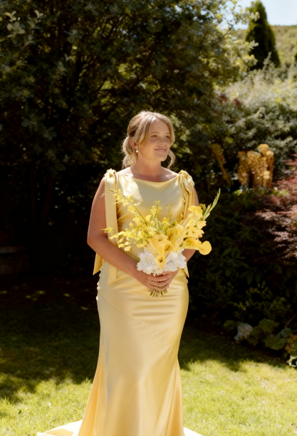 Sweet V Neck Yellow Satin Mermaid Bridesmaid Dress Long Wedding Guest Dress D1120