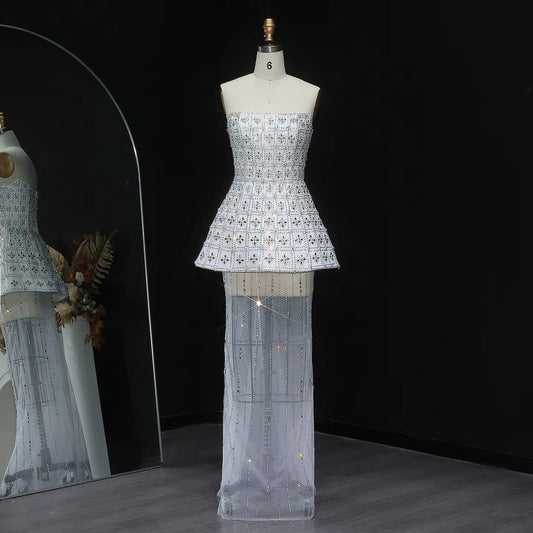 Stunning Strapless Crystal White Evening Dress SS545