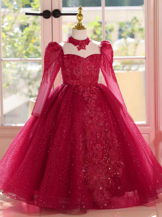 Elegant Long Sleeve Princess Flower Girl Dress for Weddings Parties D167