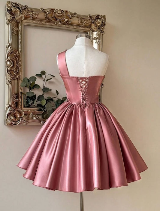 Refined Pink One Shoulder Homecoming Dress Mini with Beaded HC0152