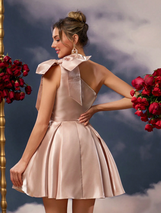 Trendy One Shoulder Sleeveless Homecoming Dress Mini with Bow CY0200