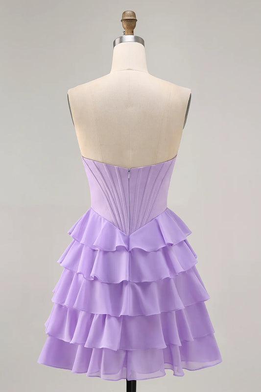 Elegant Purple Sweetheart Homecoming Dress A-Line Ruffles Pleated Mini CY0151