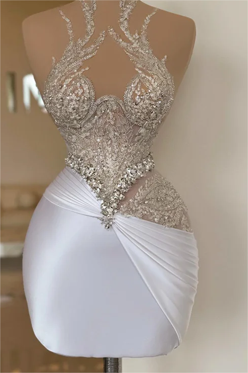 Elegant White Strapless Homecoming Dress Ball Gown Mini with Rhinestone HC0174