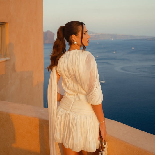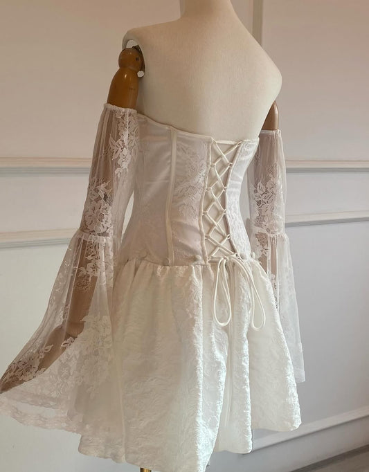Elegant White Off-the-Shoulder Homecoming Dress Mini Long Sleeves Satin CY0243
