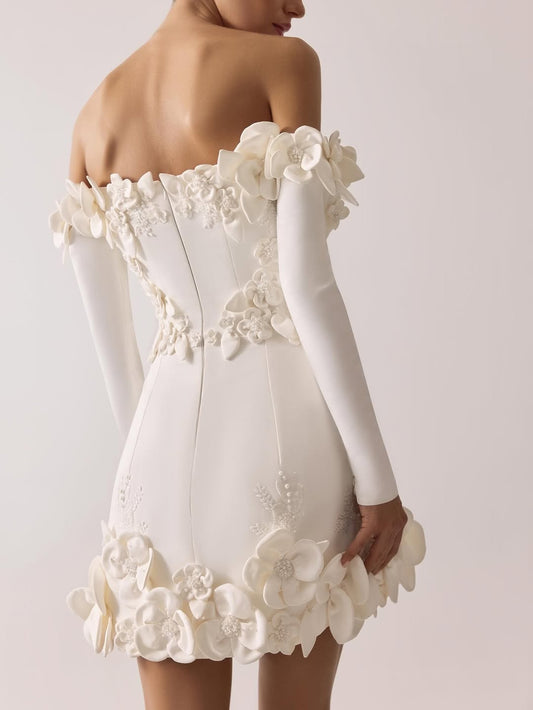 Refined White Off-the-Shoulder Homecoming Dress Long Sleeves with Flower CY0172