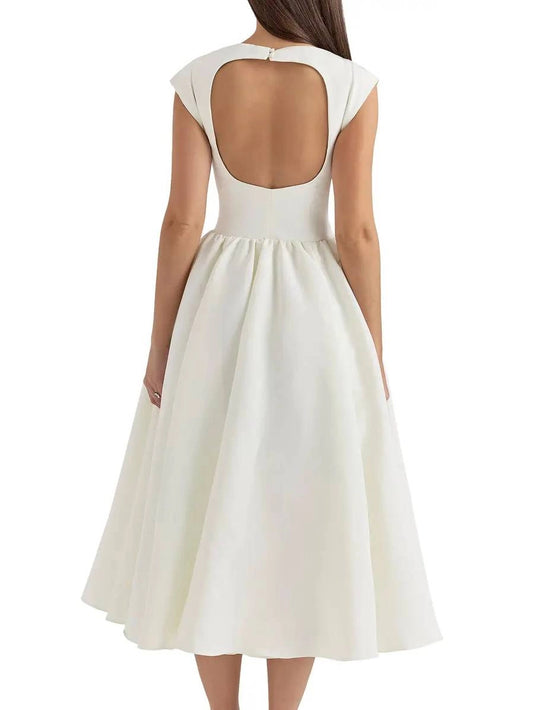 Chic White Bateau Homecoming Dress Backless Tea Length A-Line CY0244