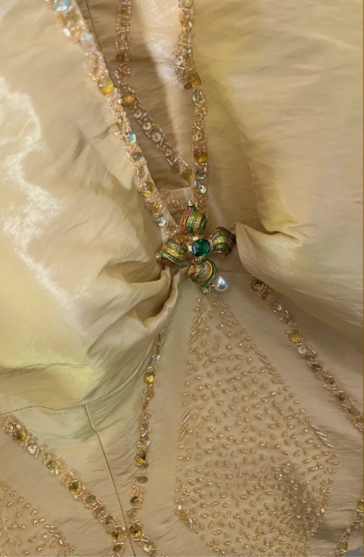 Vintage Yellow Strap Heavy Beaded Satin Lace Mermaid Prom Dress P3393
