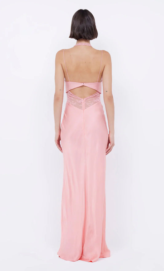 Xuewuba Dress Sexy Spaghetti Straps Halter Sleeveless Evening Dress Pink Prom Dress Sheath Maxi Dress