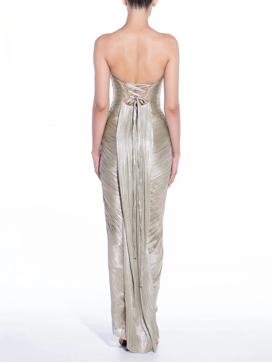 Charming Sage Satin Sleeveless Strapless Sweetheart Long Split Prom Dress with Pleated | Zelldresses