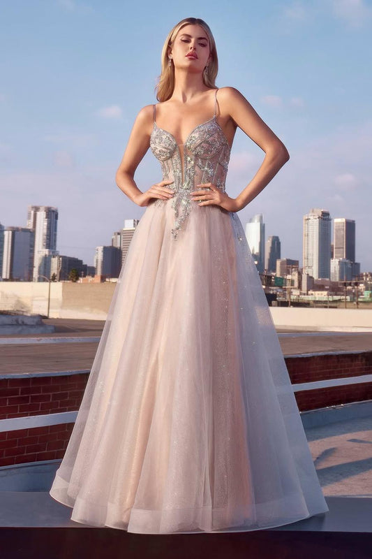 Elegant Dusty Rose Tulle Spaghetti Strap Sleeveless Long Split Prom Dress with Sequins | Zelldresses