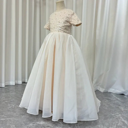 Elegant Beige Girl Dresses with Headgear Party Gown J104
