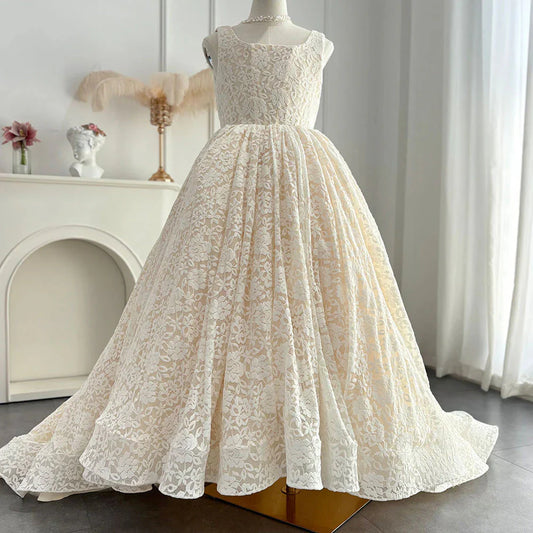 Elegant Ivory Flower Girl Dress Appliques Lace Princess Gown J261