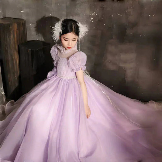 Elegant Lilac Dubai Girl Dress Handmade Flowers J262
