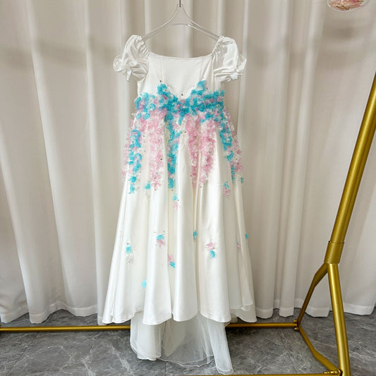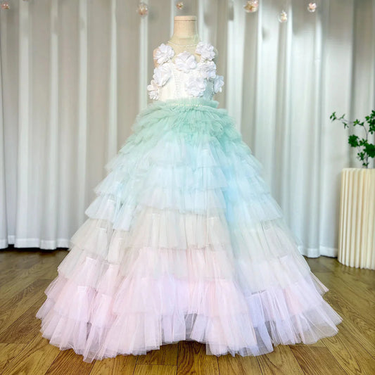 Luxury Colorful Girl Dress Handmade Flowers Kids Princess J001