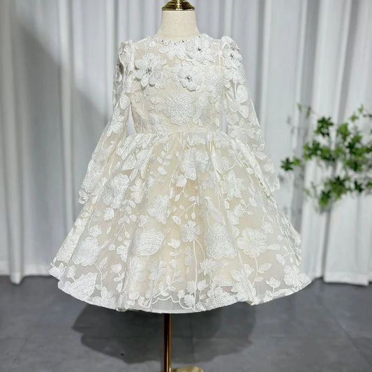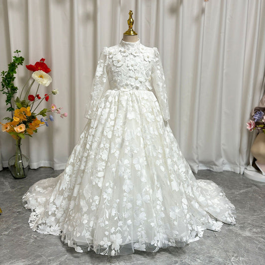 Luxury White Girl Dress 3D Flowers Princess Dubai Kids J293