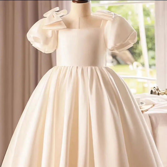 Elegant Arabic White Flower Girl Dress Satin Princess Gown J240