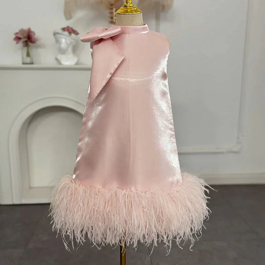 Luxury Mini Arabic Pink Flower Girl Dress Ostrich Feathers Bow J117