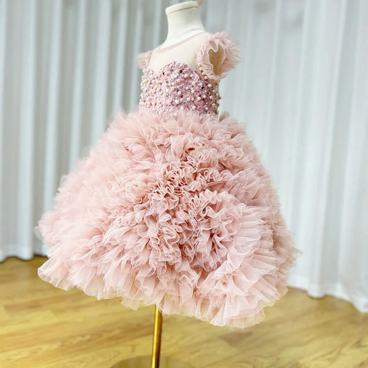Luxury Pink Baby Flower Girl Dresses Arabic Pearls Princess J042