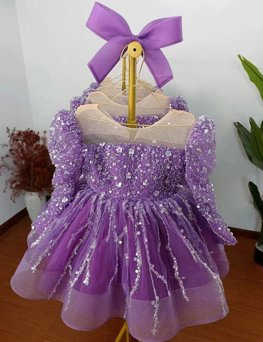 Sparkly Arabic Girl Dress Beading Purple Baby Kids Princess J204