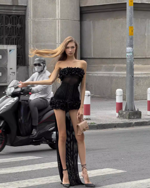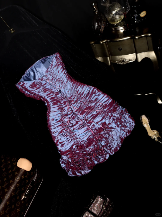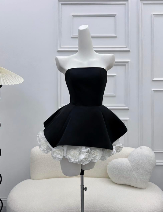 A Line Strapless Flower White Satin Black Velvet Short Homecoming Dress Cocktail Dress SH3119