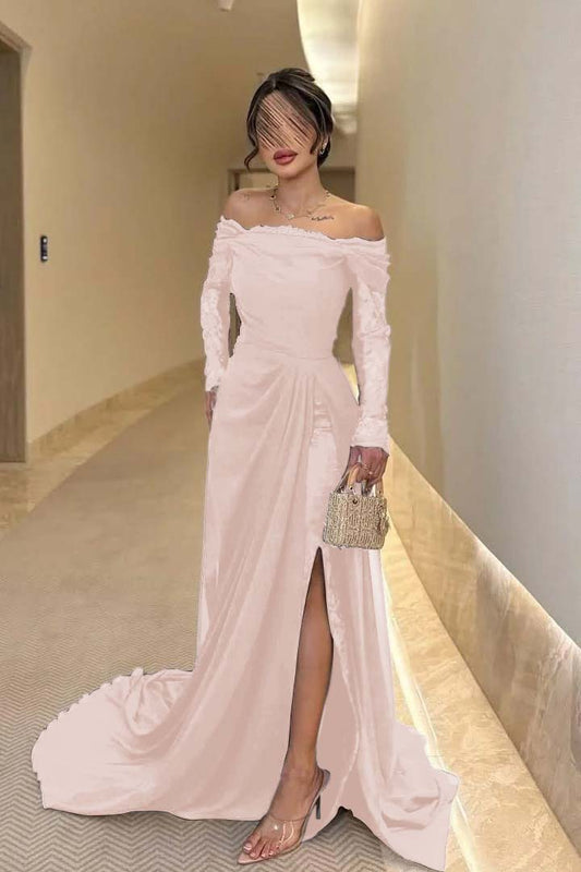 Off the Shoulder Long Sleeves Long Split Prom Dress With Pleated WQ0009