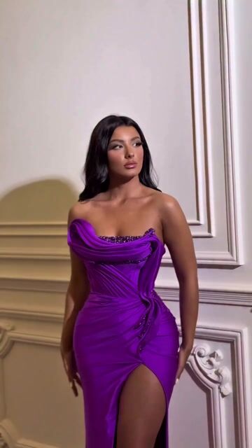 Gorgeous Purple Satin Strapless Sleeveless Pleated Split Prom Dress | Zelldresses