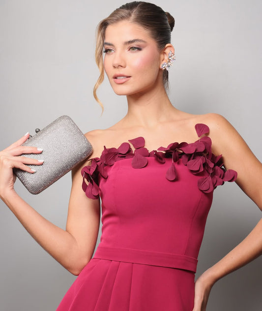 Glamorous Fuchsia Satin Applique Strapless Sleeveless Split Prom Dress | Zelldresses