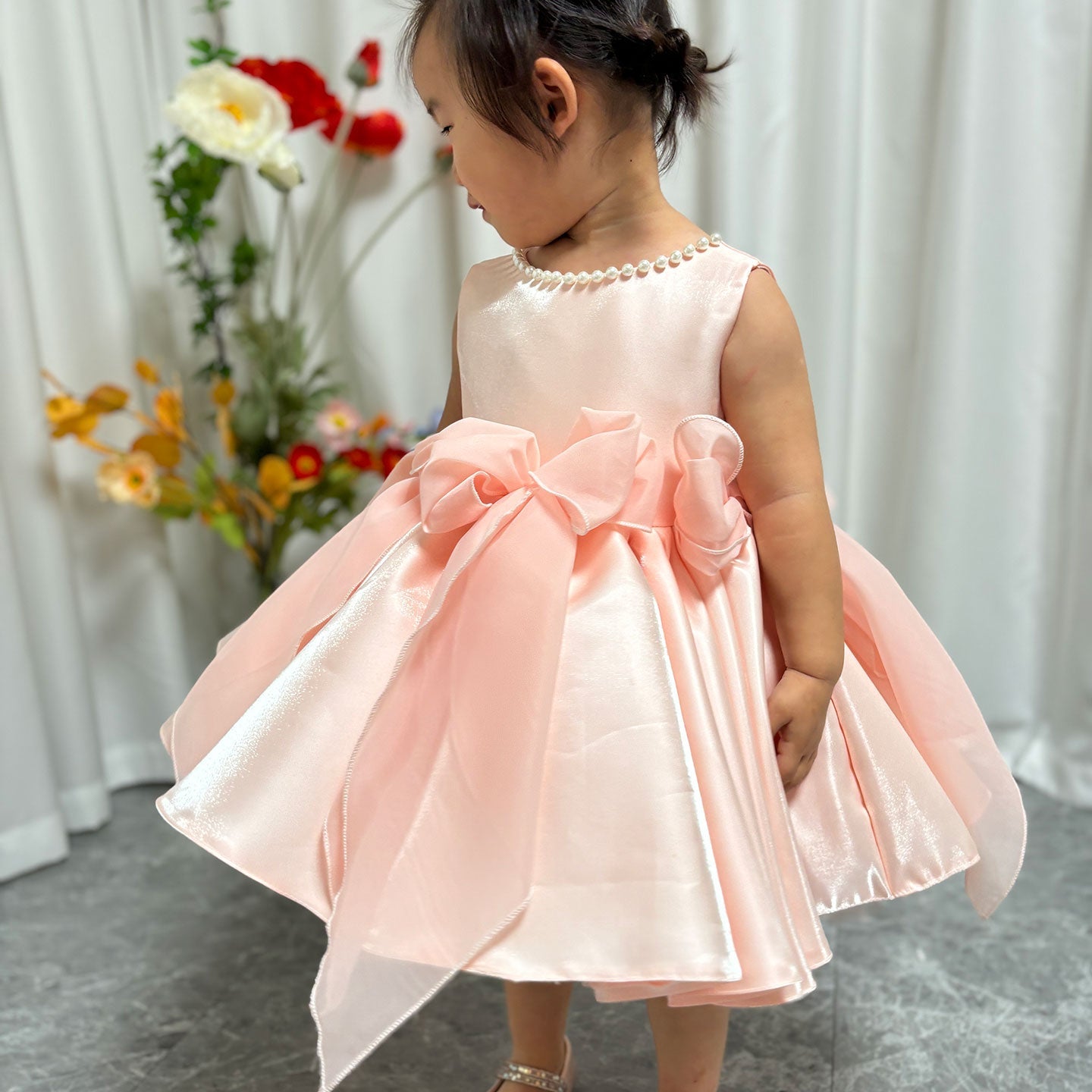 Sleeveless Pink Baby Pearls Princess Girl Dress J208