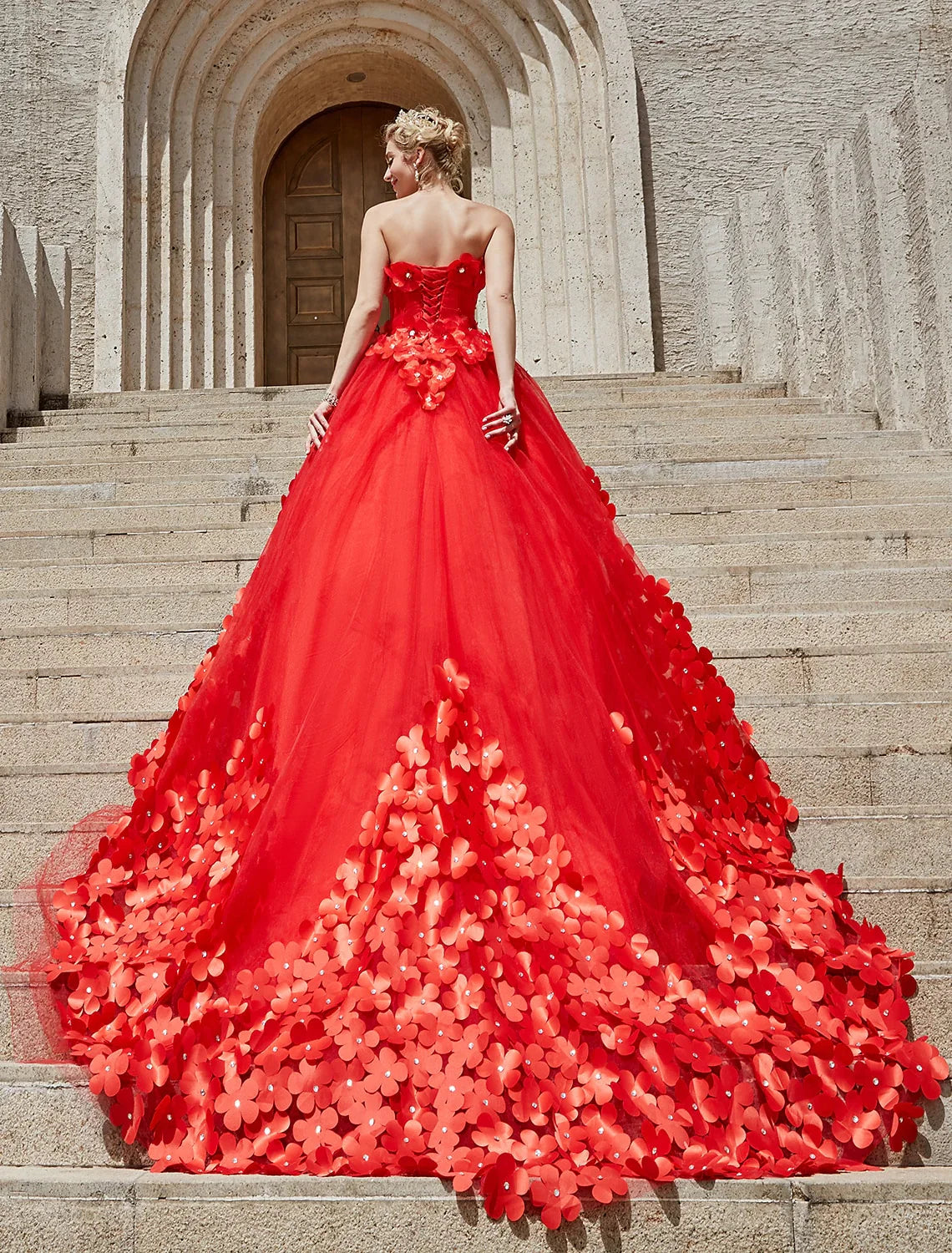 Engagement Open Back Formal Wedding Dresses Ball Gown Square Neck Strapless Chapel Train Lace Bridal Gowns With Crystals Flower