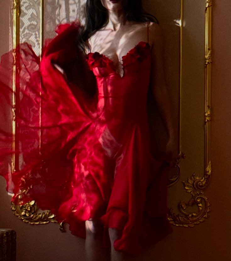 Sexy A Line Spaghetti Strap Flower Burgundy Chiffon Short Party Dress Evening Dress SH2826