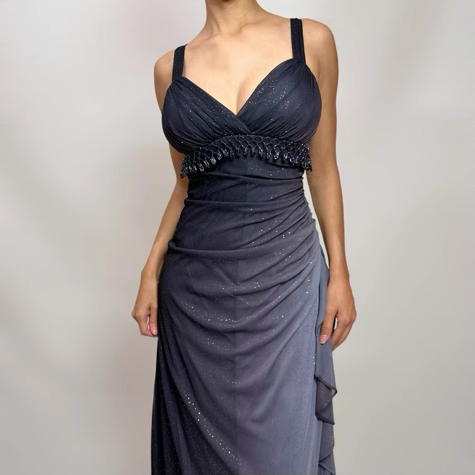 Charming A Line Spaghetti Strap Beaded Navy Blue Ombre Chiffon Party Dress Evening Dress SH2794