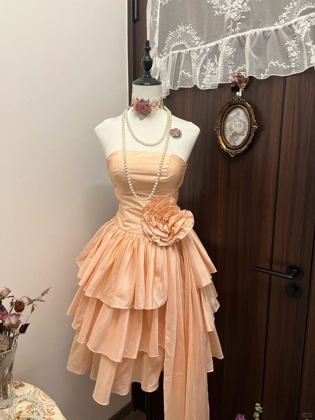 Cute Vintage A Line Strapless Layered Flower Coral Sands Satin Short Homecoming Dress Cocktail Dress SH2986