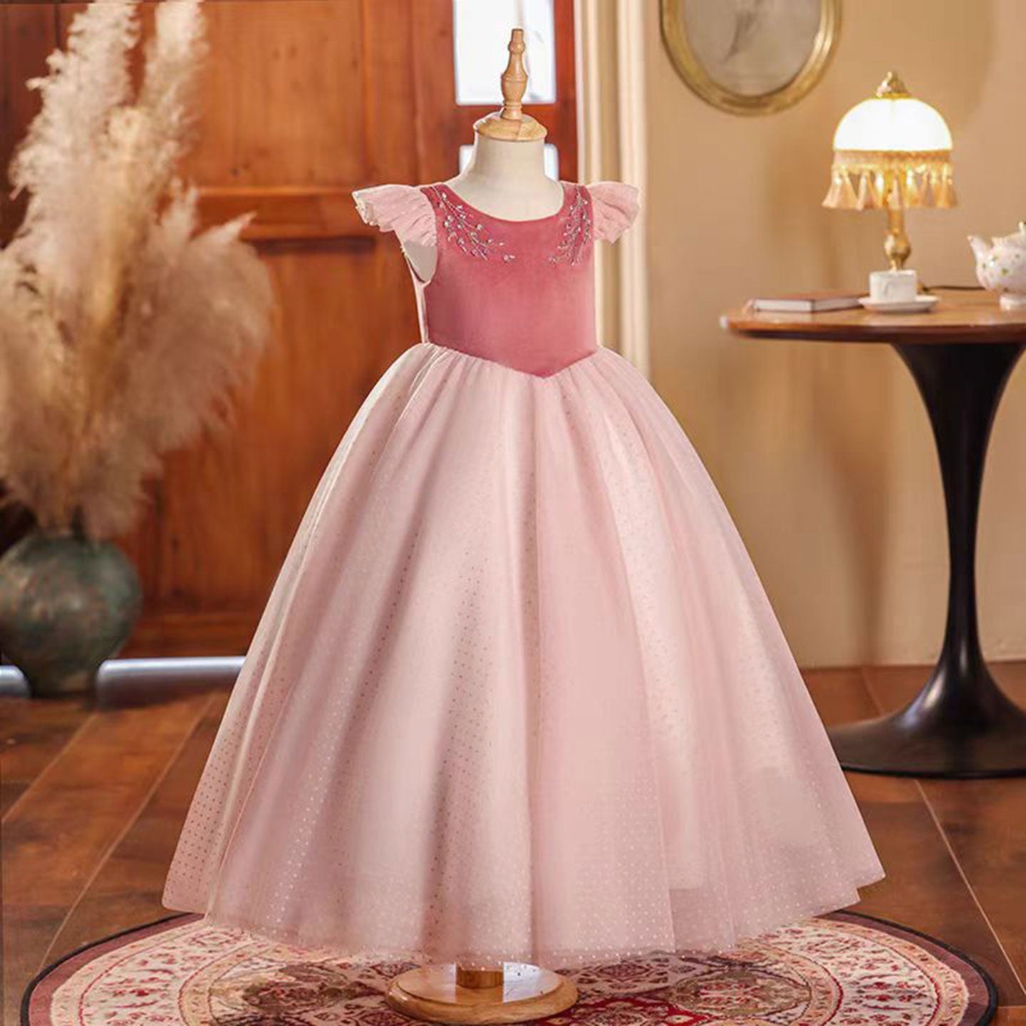 Elegant Pink Girl Bridesmaides Dresses Beaded Long Arabic J198