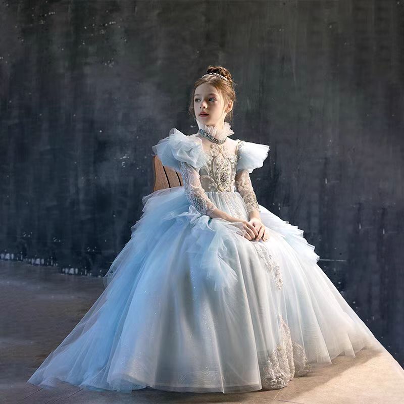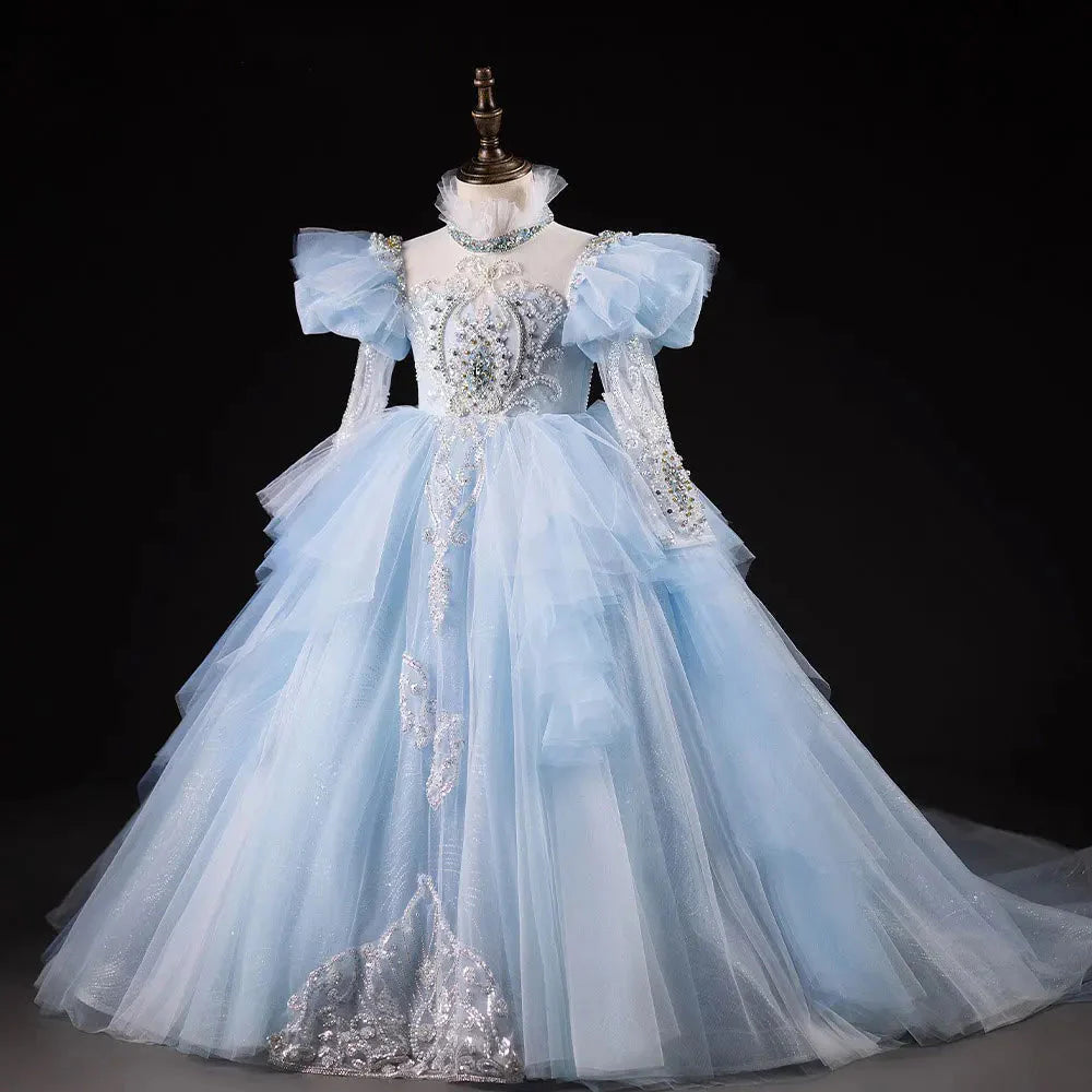 Experience the luxury and elegance of our Dreamy Vow Blue Dubai Girl Dress. Adorned with delicate pearls and beading, this Arabic Princess inspired gown is perfect for weddings, birthdays, and special occasions. Let your little girl shine like a royal in this stunning ball gown.