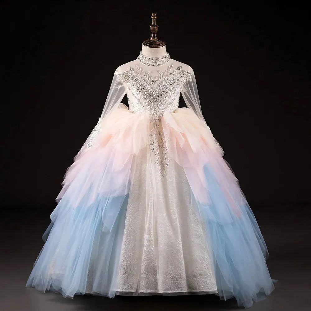 Elevate your little one's special occasion with our Luxury Dubai Flower Girl Dress. Adorned with intricate beading and pearls, this Arabic princess-inspired gown is perfect for weddings, birthdays, and other formal events. Let your child shine in this long ball gown, combining elegance and playfulness. Available in 2024 J385 style.