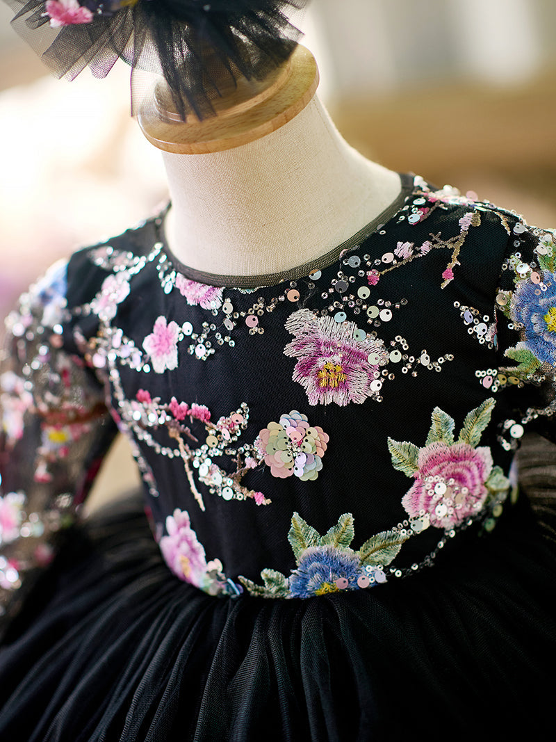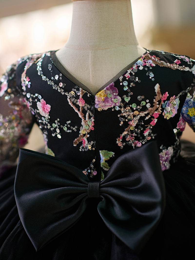 Black Baby Long Sleeve Adorable Knee Length Girl Dress J057