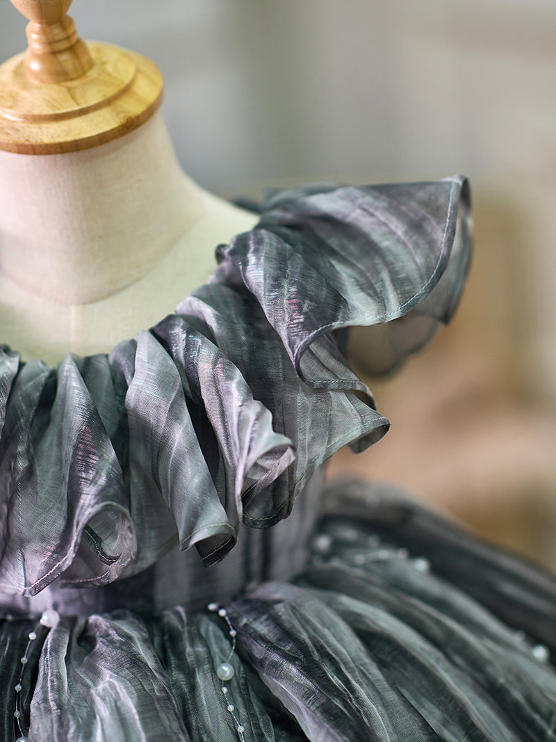 Black Baby Puffy Sleeve Pearls Knee Length Birthday Girl Dress J024