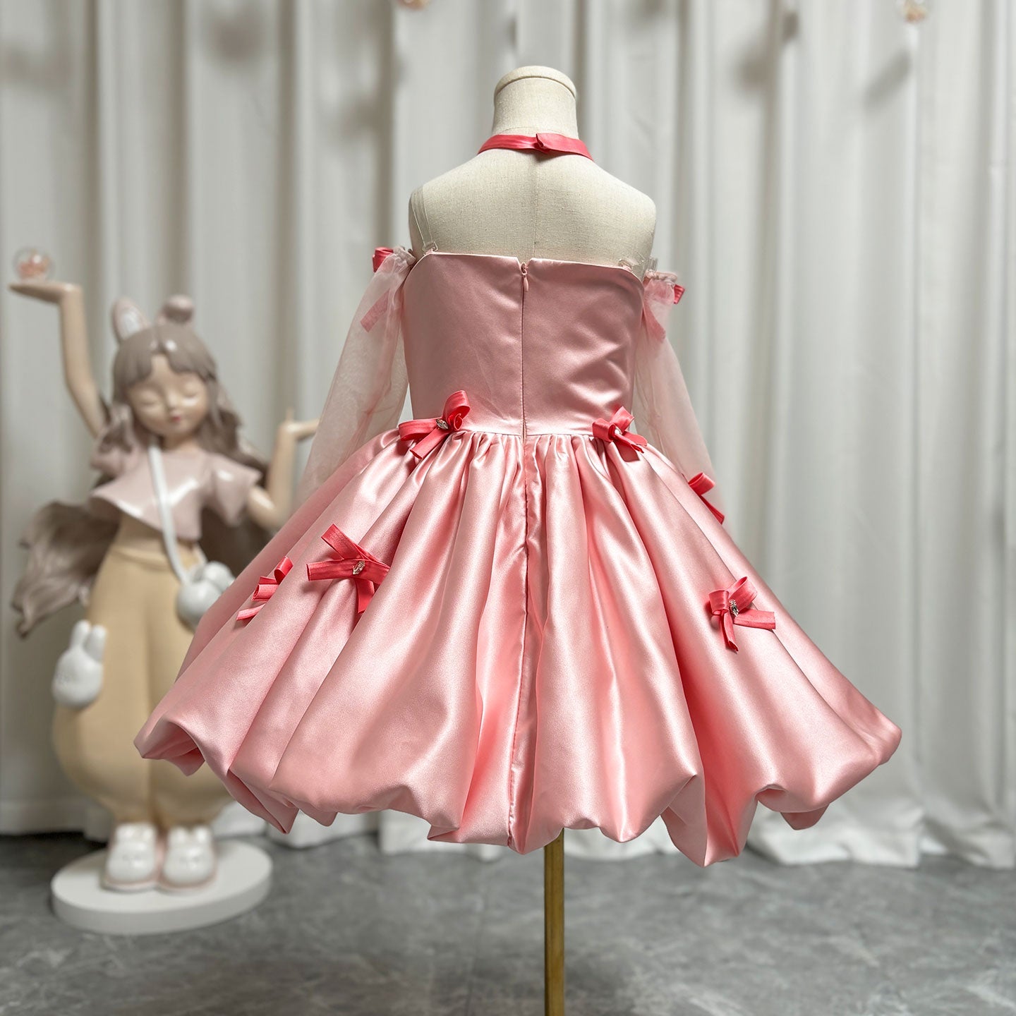 Elegant Pink Arabic Flower Girl Dresses with Glove Backless for Kids J100