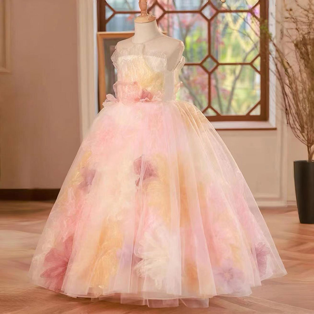 Luxury Arabic Floral Girl Dress with Flowers for Birthday J229