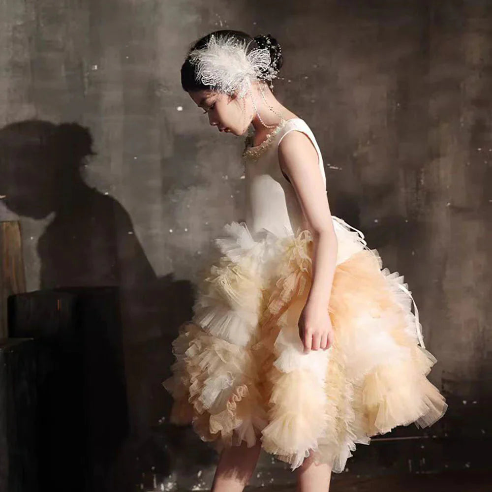 Indulge in luxury with DreamyVow's Champagne Arabic Girl Dress! Adorned with pearls and a Dubai-inspired design, this dress is fit for a princess. Perfect for birthdays, weddings, or any holiday occasion, it's the ultimate gown for your little royalty. Get it now for a truly magical experience!