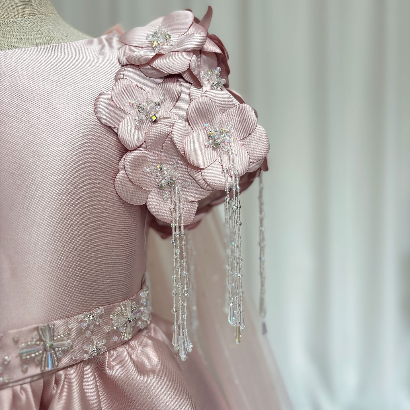 Luxury Dusty Pink Girl Dress Beadeds Arabic with Cap J037