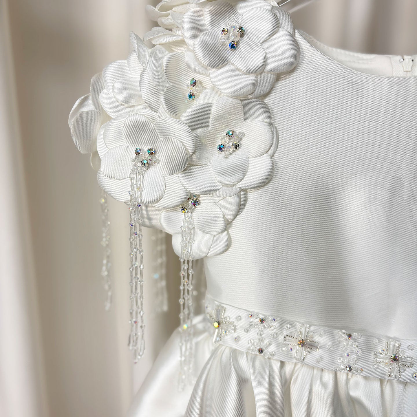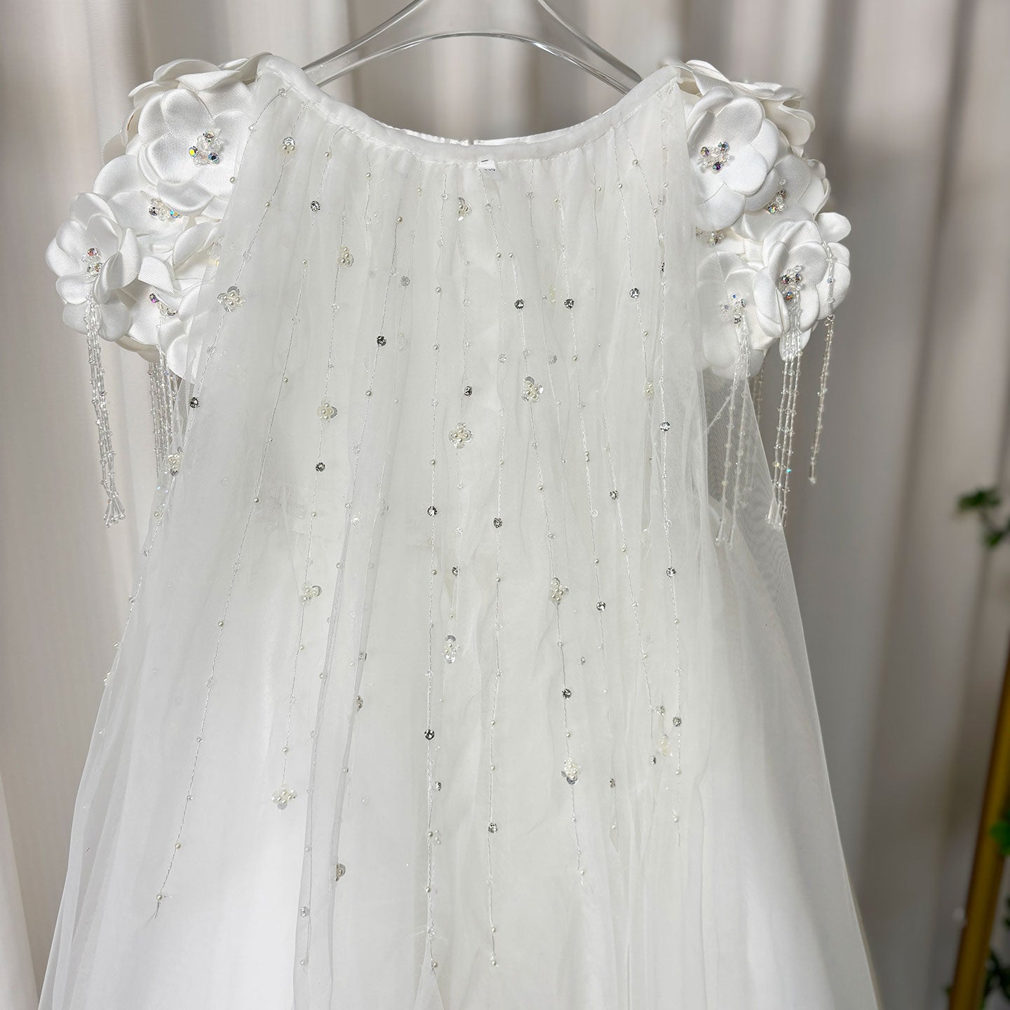 DreamyVow presents our stunning Luxury Dusty Pink Girl Dress, featuring exquisite beadwork and intricate handmade flowers. With a regal Arabic design and a delicate cap sleeve, this dress is perfect for any special occasion - from weddings to birthday parties. Make your little princess shine in our Princess Kids Gown J037.