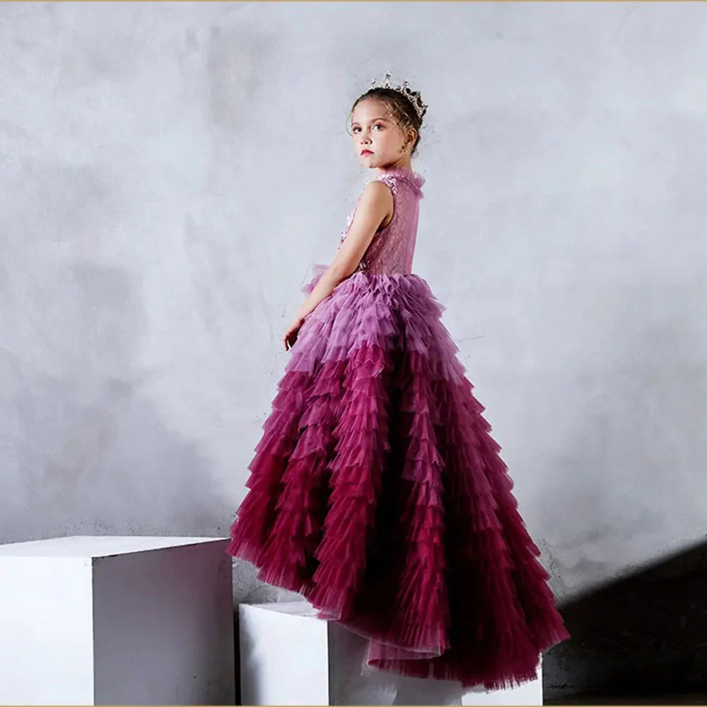 Luxury Fuchsia Flower Girl Dress Tiered Applique Princess Gown J017