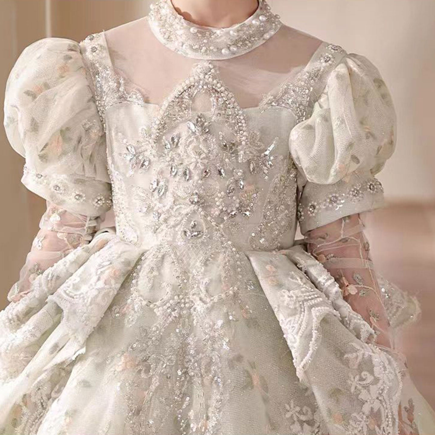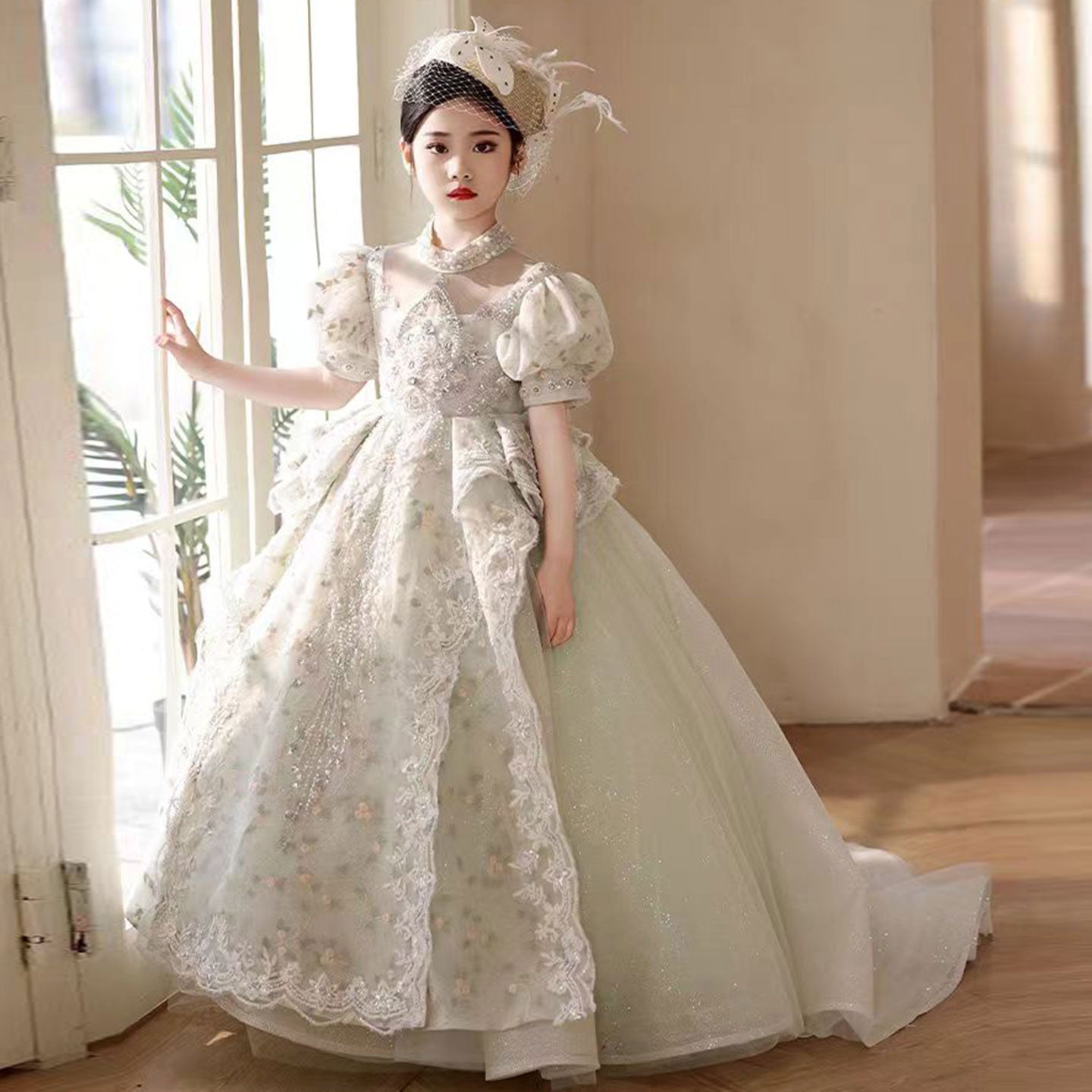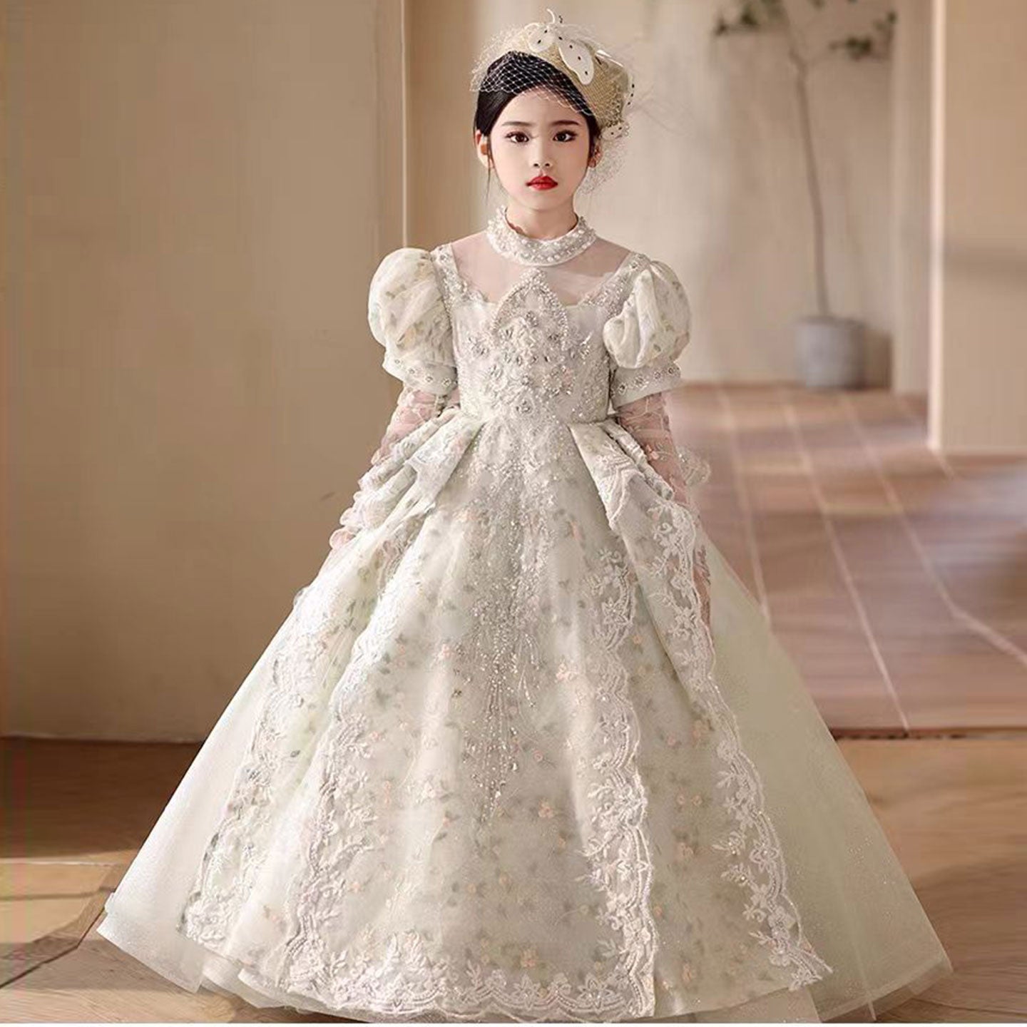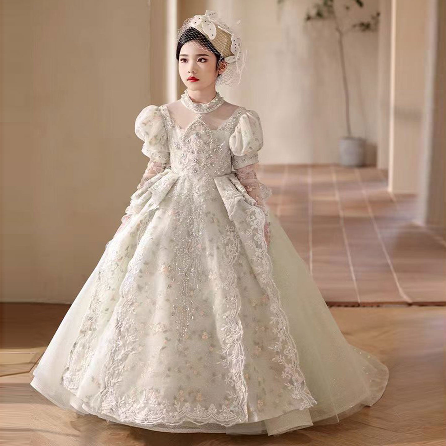 Luxury Sage Green Birthday Girl Dress with Sleeve J314