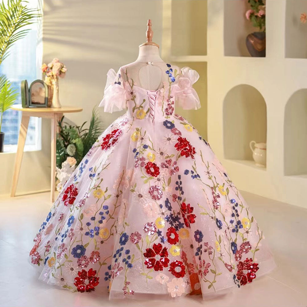 Luxury Sequined Floral Long Birthday Girl Dress J236