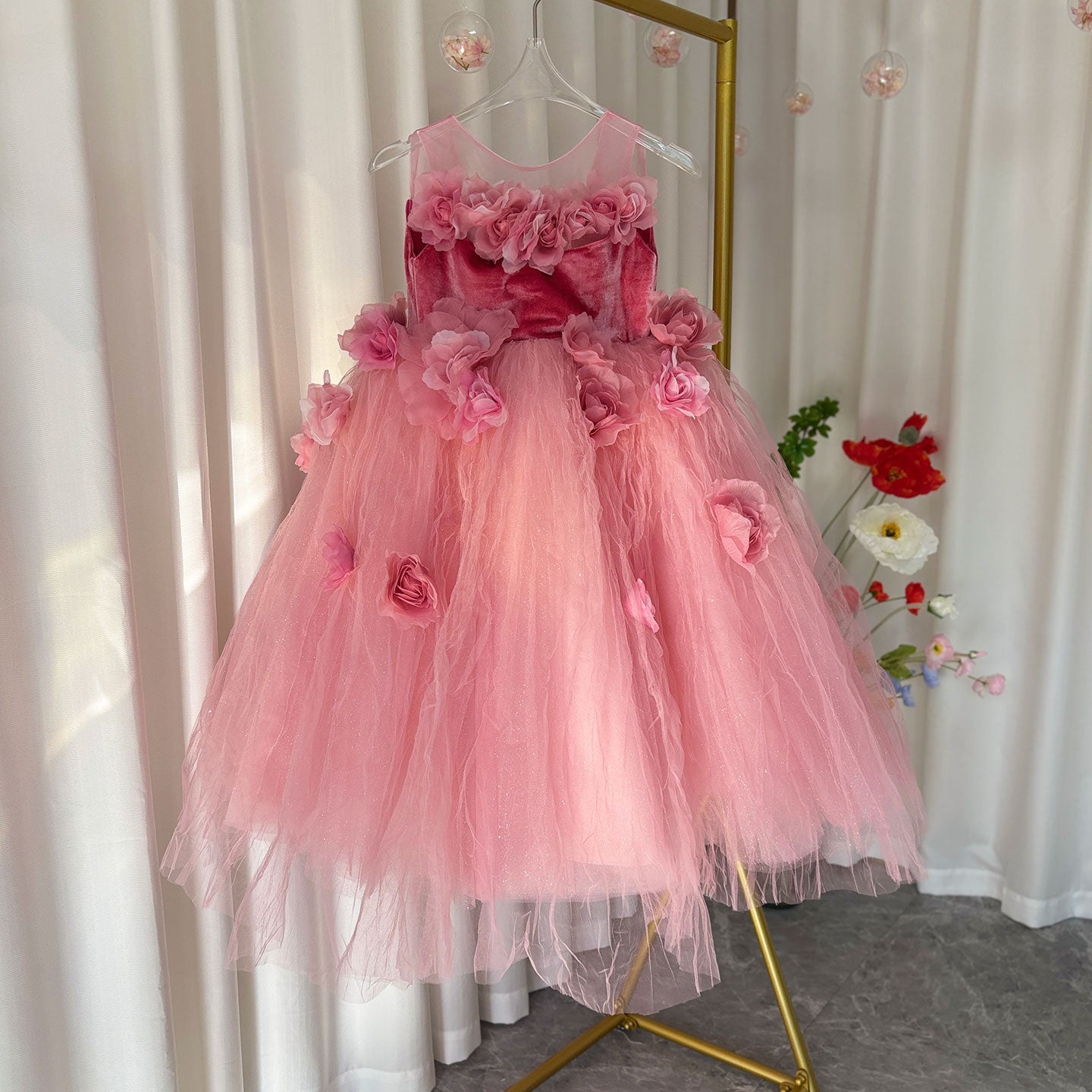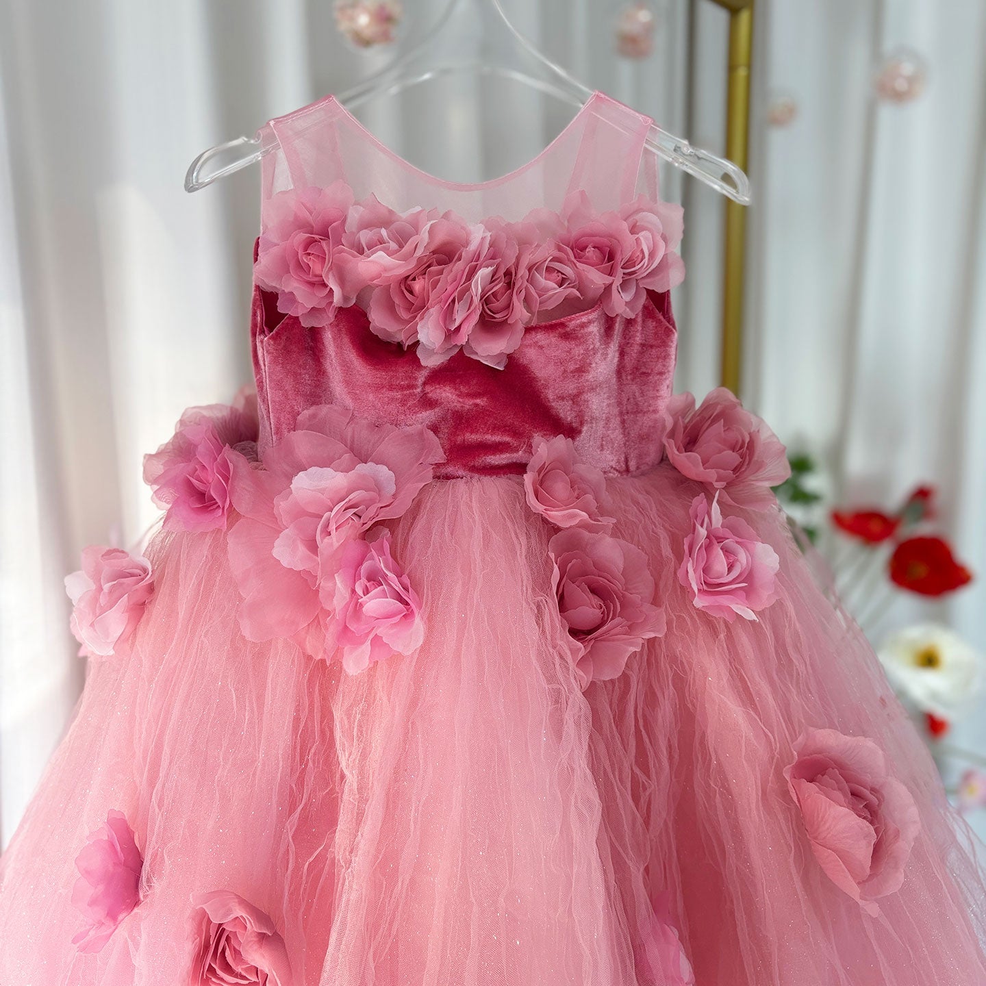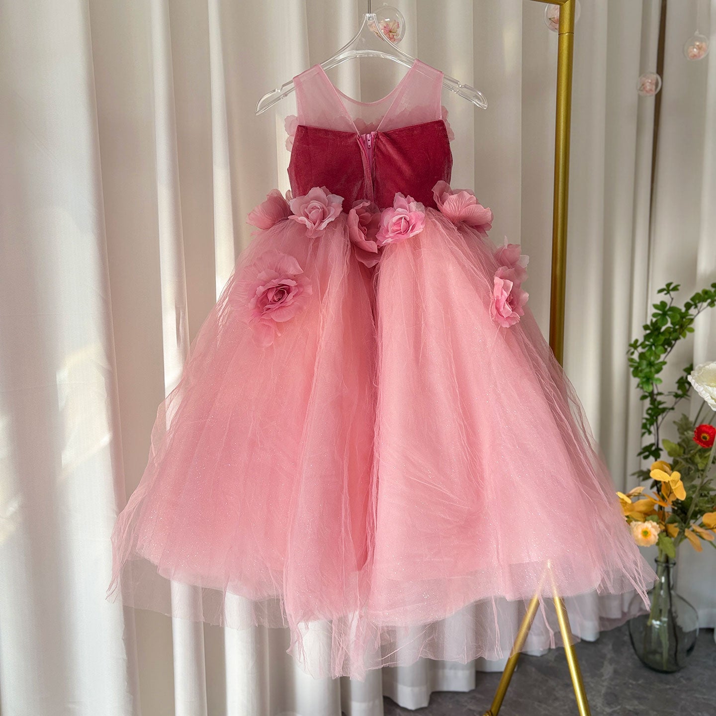 Pink Girl Dress Handmade Flowers for Kids Birthday Party J139