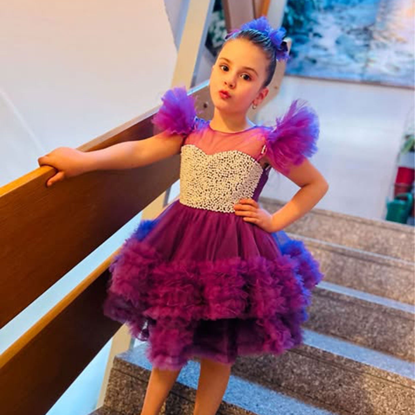 Purple Pearls Flower Girl Dress for Wedding Birthday J318